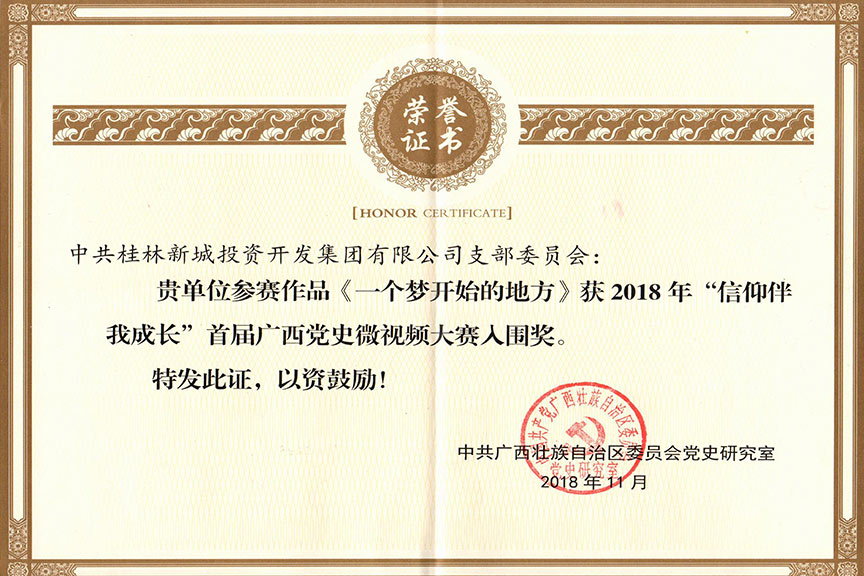 2019年3月5日,臨桂新區(qū)管委會(huì)、新城投資集團(tuán)《家和萬(wàn)事興》喜獲“爭(zhēng)做時(shí)代新女性·傳承美德沐書(shū)香”國(guó)學(xué)經(jīng)典誦讀比賽二等獎(jiǎng)
