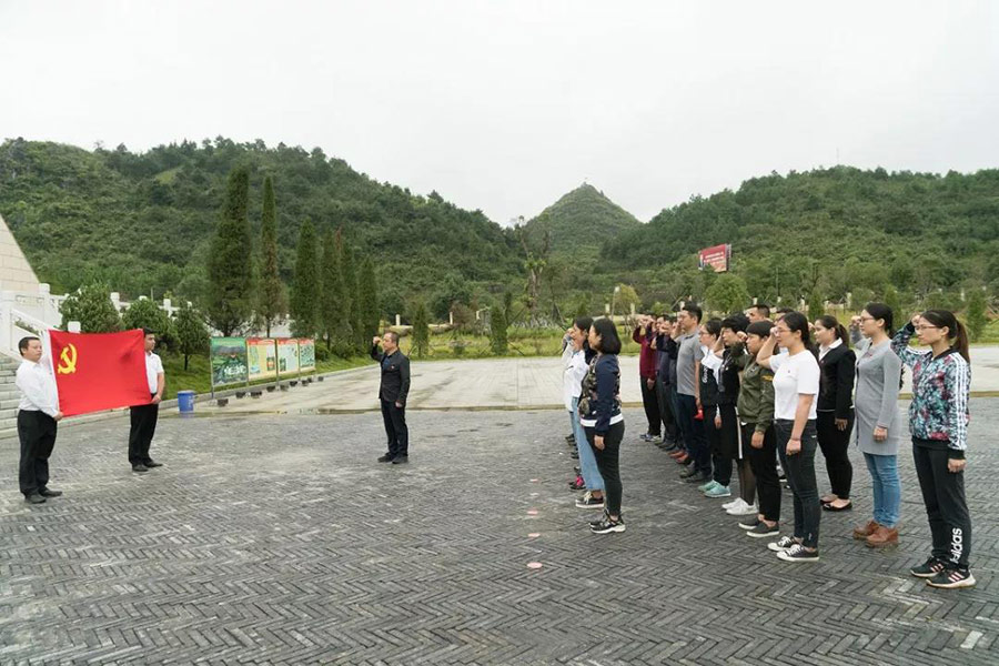 隨后,全體黨員來到湘江戰(zhàn)役新圩阻擊戰(zhàn)酒海井紅軍紀(jì)念園,學(xué)習(xí)了解了紅軍突破湘江的歷史。兩名黨員代表為烈士敬獻(xiàn)了花圈,覃正東、周道林整理挽聯(lián),祭奠烈士英靈,全體黨員向革命烈士行三鞠躬禮,緬懷先烈,寄托哀思。最后,全體黨員在黨支部書記周道林的帶領(lǐng)下重溫入黨誓詞。