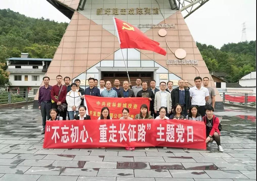 “青山肅立,綠水長歌,重走長征路,初心永不忘”,9月27日,桂林新城投資集團(tuán)黨支部組織全體黨員來到桂林市灌陽縣新圩阻擊戰(zhàn)陳列館和湘江戰(zhàn)役新圩阻擊戰(zhàn)酒海井紅軍紀(jì)念園,參加臨桂區(qū)直屬機關(guān)工委舉辦的“不忘初心、重走長征路”愛國主義教育第六期活動。臨桂新區(qū)工委委員、管委會副主任覃正東以普通黨員的身份參加此次活動。