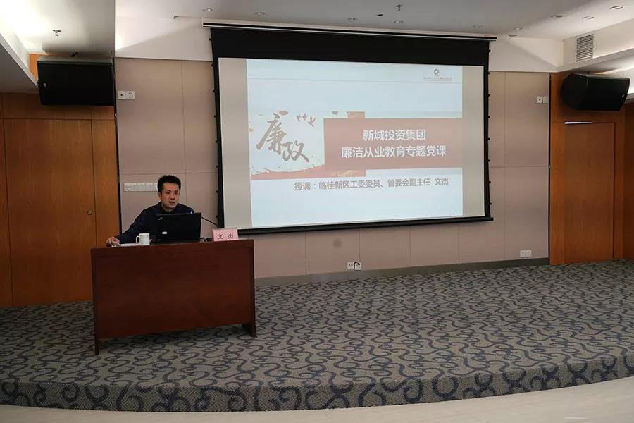 為了增強國企工作人員廉潔從業(yè)意識,筑牢拒腐防變的思想防線,1月30日下午,臨桂新區(qū)工委委員、管委會副主任文杰在新城投資集團辦公樓1001會議室上了一堂題為《廉潔從業(yè)教育》專題黨課,為集團公司全體黨員干部職工在年關到來之際,把好廉潔“節(jié)點關”,以案例警示教育作廉潔提醒。集團公司領導班子、全體黨員、預備黨員、主管及以上人員、子公司負責人、發(fā)展對象、入黨積極分子參加了本次黨課學習。