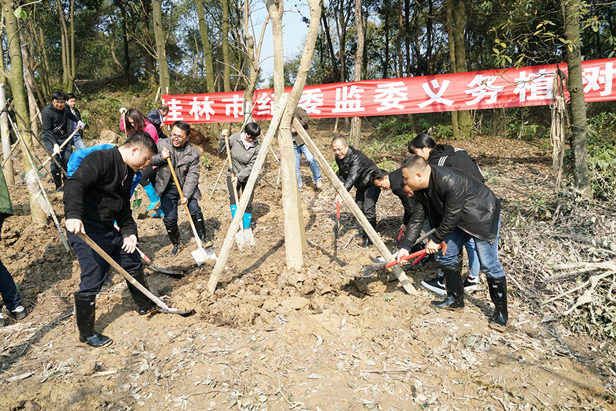 陽(yáng)春三月,萬(wàn)物復(fù)蘇,為積極響應(yīng)國(guó)家大力開(kāi)展植樹(shù)造林的號(hào)召,推進(jìn)生態(tài)文明建設(shè),倡導(dǎo)健康文明、綠色環(huán)保的生活理念,3月12日上午,新城投資集團(tuán)帶領(lǐng)市建筑設(shè)計(jì)院、嘉華監(jiān)理公司、中建八局桂林公司參加了由市紀(jì)委組織的基地項(xiàng)目義務(wù)植樹(shù)活動(dòng)。據(jù)組織方介紹,市紀(jì)委、市巡查辦、市派駐紀(jì)檢組、臨桂區(qū)紀(jì)委、林業(yè)局、園林局等多家單位,計(jì)180余人參加了此次植樹(shù)活動(dòng)。