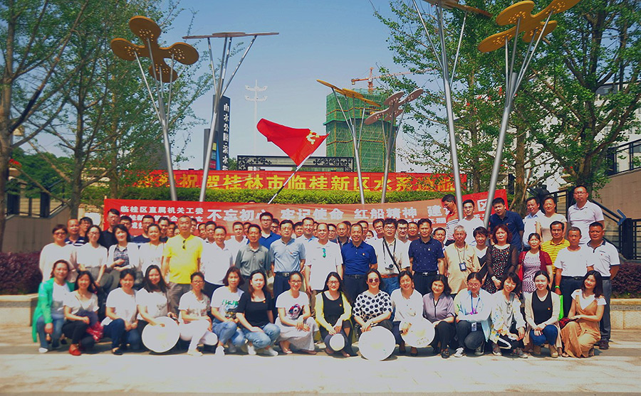 為深入學(xué)習(xí)貫徹黨的十九大精神,進(jìn)一步激發(fā)黨員發(fā)揮先鋒模范帶頭作用,2018年5月17日下午,臨桂區(qū)直屬機(jī)關(guān)工委、臨桂新區(qū)管委黨總支和新城投資集團(tuán)黨支部三級(jí)聯(lián)動(dòng),共同組織開(kāi)展“不忘初心,牢記使命,紅船精神,建設(shè)新區(qū)”的主題黨日活動(dòng)。臨桂新區(qū)工委副書(shū)記唐標(biāo)明同志、臨桂新區(qū)工委委員覃正東同志、臨桂新區(qū)工委委員莫秋元同志、新城投資集團(tuán)黨支部書(shū)記周道林同志都以普通黨員的身份參加今天的黨日主題活動(dòng)。