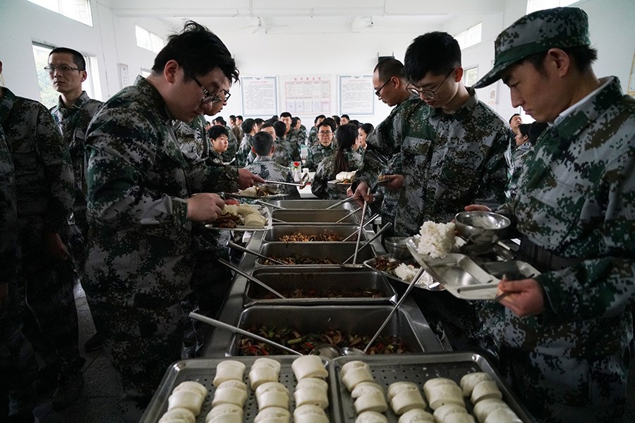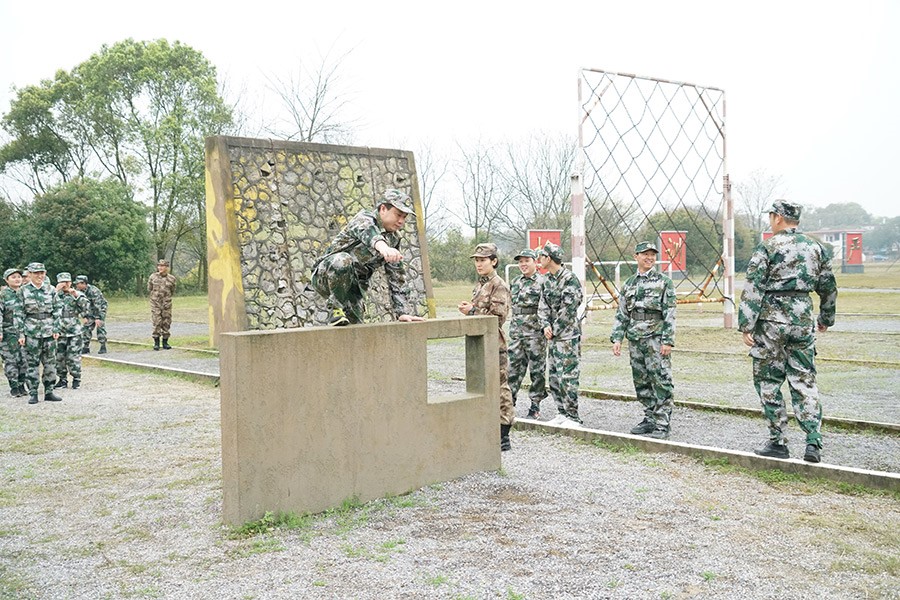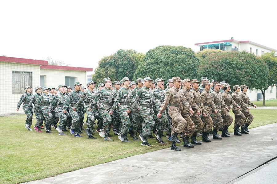 抵達(dá)訓(xùn)練場(chǎng)地后,全體人員換上迷彩服,拉開了一天封閉軍訓(xùn)的序幕。