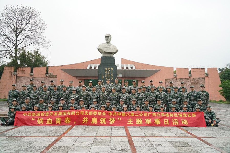 中共桂林新城投資開發(fā)集團(tuán)有限公司支部委員會(huì)、中共中建八局二公司廣西公司桂林區(qū)域黨支部于2018年10月30日成立聯(lián)合黨支部后,提出通過“企企聯(lián)建,強(qiáng)強(qiáng)聯(lián)合,將黨小組建立到項(xiàng)目上”的方式,共同打造“黨旗映勝地”國(guó)企黨建品牌。通過共建活動(dòng)平臺(tái),分享工作資源、交流工作經(jīng)驗(yàn)、解決實(shí)際問題等途徑,實(shí)現(xiàn)黨的建設(shè)良性互動(dòng)。3月16日,聯(lián)合黨支部組織黨員干部80余人開展了“鐵血青春,并肩筑夢(mèng)”主題軍事日聯(lián)建活動(dòng),以準(zhǔn)軍事化訓(xùn)練的形式強(qiáng)化基層黨組織建設(shè)。