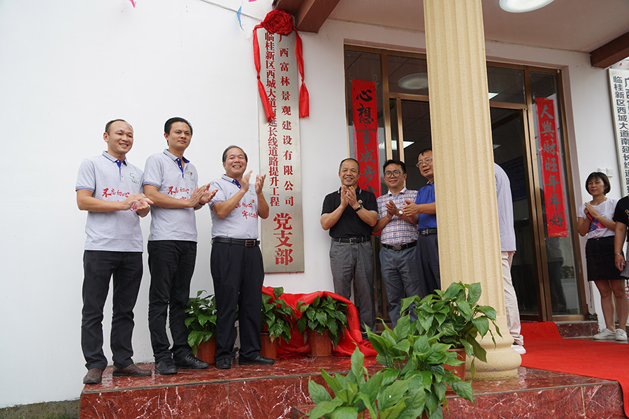 為了進(jìn)一步發(fā)揮基層黨組織戰(zhàn)斗堡壘作用,加快推進(jìn)項(xiàng)目建設(shè),6月26日下午,在西城大道南延長線項(xiàng)目現(xiàn)場,舉行了“廣西富林景觀建設(shè)有限公司臨桂新區(qū)西城大道南延長線道路提升工程黨支部”揭牌活動(dòng)。