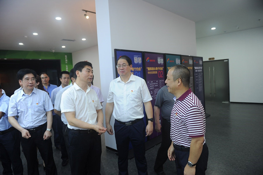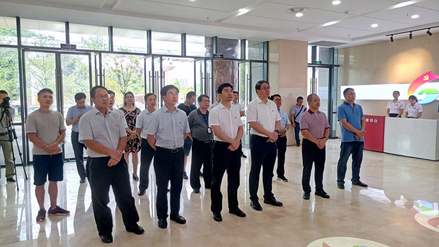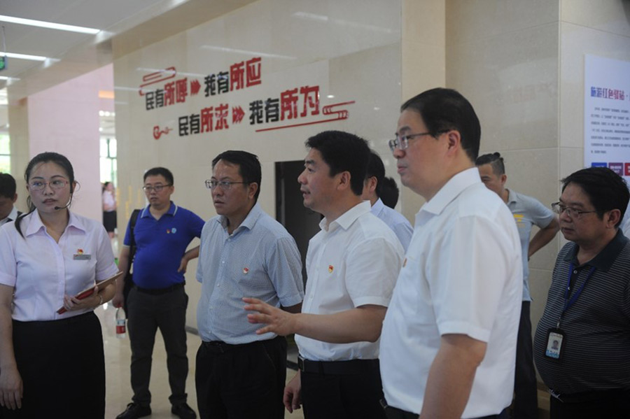 2019年7月1日,在中國(guó)共產(chǎn)黨建黨98周年到來(lái)之際,桂林市委副書記白松濤一行專程到桂林市黨群服務(wù)中心調(diào)研指導(dǎo)試運(yùn)行情況。市委常委、組織部部長(zhǎng)、市黨群服務(wù)中心建設(shè)工作領(lǐng)導(dǎo)小組組長(zhǎng)彭東光陪同調(diào)研。