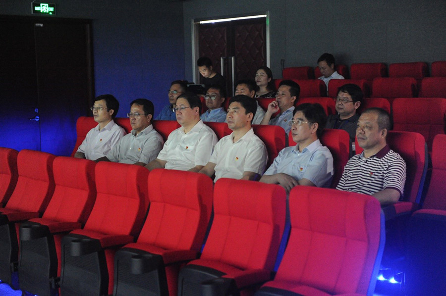 白松濤一行在二樓紅色影院觀看桂林黨建宣傳片
