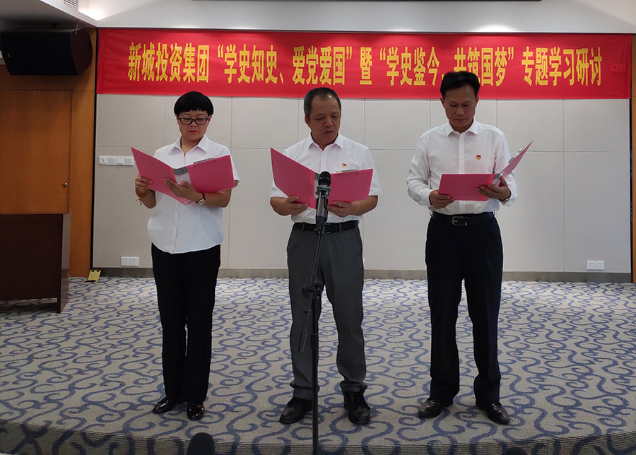 10月14日,新城投資集團黨總支籌備工作領(lǐng)導(dǎo)小組召開“學(xué)史知史、愛黨愛國”暨“學(xué)史鑒今,共筑國夢”專題學(xué)習(xí)會,認真學(xué)習(xí)貫徹習(xí)近平總書記關(guān)于學(xué)習(xí)黨史、新中國史的重要論述,在學(xué)習(xí)領(lǐng)悟黨史、新中國史中不斷深化對“不忘初心、牢記使命”的認識和理解,增強守初心、擔(dān)使命的思想自覺和行動自覺。會議由集團黨總支籌備工作領(lǐng)導(dǎo)小組副組長、副總經(jīng)理鄧仁友主持,集團黨總支籌備工作領(lǐng)導(dǎo)小組組長、主題教育領(lǐng)導(dǎo)小組組長、董事長周道林出席會議并作重點講話,集團黨總支籌備工作領(lǐng)導(dǎo)小組成員、副總經(jīng)理張新悅出席會議。