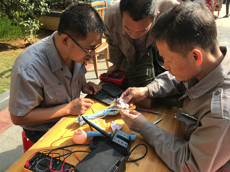 新城投資集團黨員志愿者們在現(xiàn)場開展“便民服務進社區(qū)”活動,對居民送來的家電進行故障診斷和免費維修,各種飲水機、豆?jié){機、電飯煲、電水壺等小家電在志愿者手中紛紛運轉起來,志愿者們認真負責的態(tài)度和專業(yè)的維修技能獲得了居民們的一致好評。