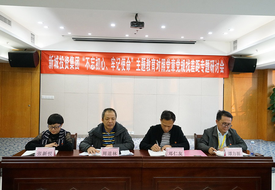 11月11日,新城投資集團(tuán)黨支部召開“不忘初心、牢記使命”主題教育暨對照黨章黨規(guī)找差距專題研討會。集團(tuán)黨支部書記、董事長周道林主持會議。