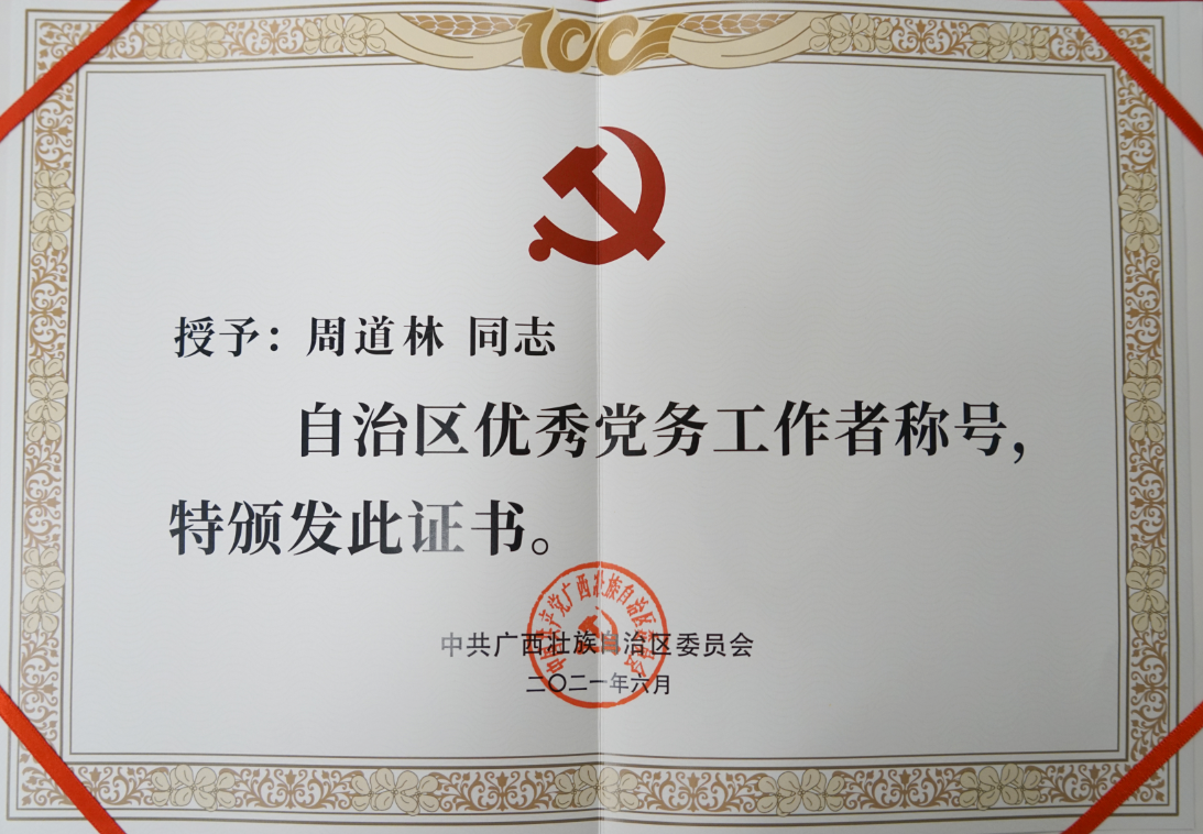 桂林新城投資集團(tuán)黨總支書(shū)記周道林榮獲“廣西壯族自治區(qū)優(yōu)秀黨務(wù)工作者”稱(chēng)號(hào),并參加在桂林市會(huì)議中心小禮堂召開(kāi)的廣西壯族自治區(qū)“兩優(yōu)一先”表彰大會(huì)桂林分會(huì)場(chǎng)電視電話(huà)會(huì)議。
