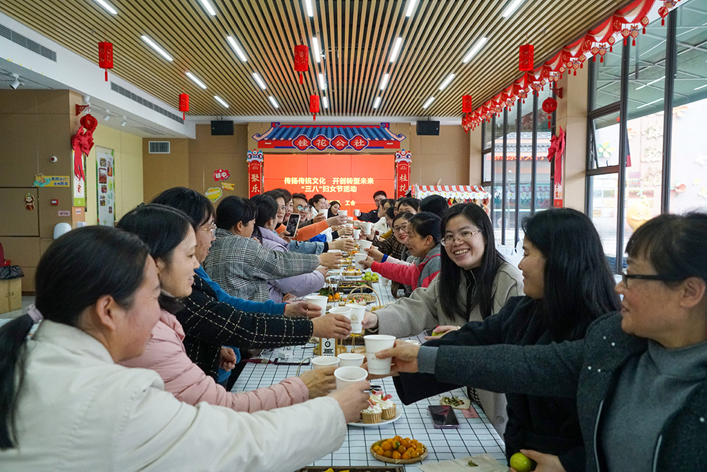 第三項(xiàng)活動(dòng)是午后茶敘。大家圍一方天地,生一爐煙火,飲一壺清茶,享受春日午后時(shí)光。輕松愉悅的氛圍讓女職工們沉浸其中,大家分別從“工作體會(huì)、日常生活、團(tuán)隊(duì)精神、經(jīng)營(yíng)理念等方面”暢談心得感悟,祝愿公司在轉(zhuǎn)型的路上越走越好,業(yè)績(jī)節(jié)節(jié)升高。聊到興起處,集團(tuán)工會(huì)主席譚力源忍不住高歌一曲助興,帶動(dòng)女職工們盡情展現(xiàn)自己的才藝,有的一展歌喉,有的輕歌曼舞,現(xiàn)場(chǎng)充滿了歡聲笑語(yǔ),洋溢著喜悅的氣氛,大家暫時(shí)忘卻工作中的忙碌,治愈生活中的疲憊。