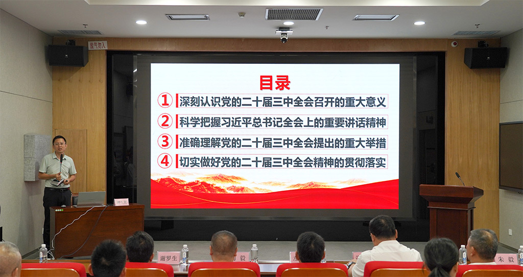 在活動中,新城投集團黨委主動作為,特邀市委黨校周久賀教授為全體黨員講授二十屆三中全會精神。周教授從《決定》中提出的多項重要措施、進一步全面深化改革的六項基本原則、經(jīng)濟與民生領域的改革、教育科技人才體制的深化改革、黨的領導和黨的建設制度的改革等方面進行了深入闡釋。他結(jié)合實際情況,用生動的語言和豐富的案例,為黨員們上了一堂深刻而生動的黨課。周教授的講解進一步激發(fā)了黨員們的學習熱情和工作動力,他們紛紛表示要將二十屆三中全會精神融入到實際工作中去,為企業(yè)的發(fā)展貢獻自己的力量。