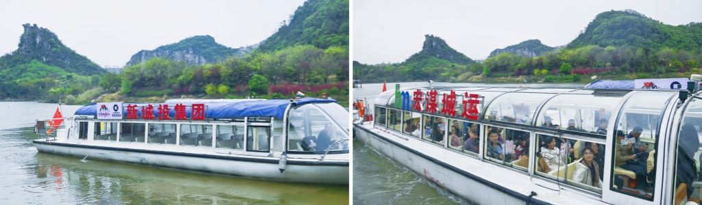 下午14時,壽星們齊聚水一坊碼頭,乘“新城投號”“宏謀城運號”開啟臨桂區(qū)環(huán)城水系全景游覽。碧波瀲滟的水面、錯落有致的綠化景觀、古香古韻的橋梁建筑,這正是集團近年來實施水溪支流、景觀提升工程的生動注腳。通過實施一系列水系治理和綠化提升,環(huán)城水系不僅成為市民休閑娛樂的新去處,也成為集團踐行綠色發(fā)展理念的重要成果展示窗口和臨桂區(qū)“生態(tài)會客廳”。