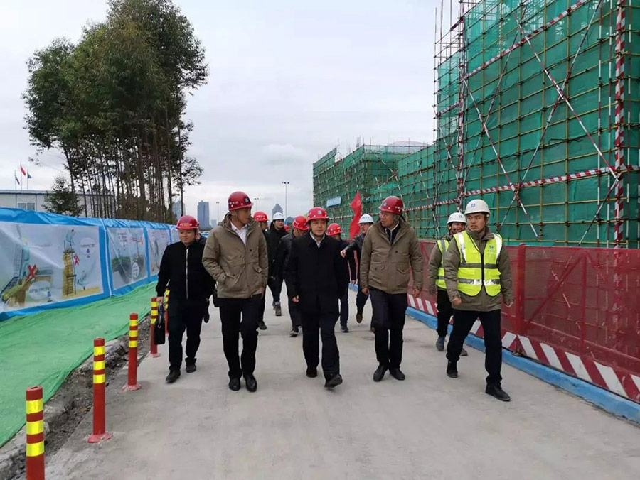 圖為彭代元副市長一行觀摩基地項目現(xiàn)場