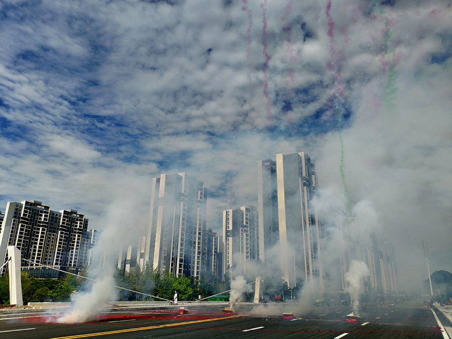 新龍路橋由上海市政交通設計研究院有限公司設計,于2016年10月30日開工建設。橋梁為鋼筋混凝土斜腿鋼構,橋臺采用鋼筋混凝土結構,橋身橫跨核心區(qū)水系沙溏河,長56米,寬47米,橋下的景觀游船河道42米,是連接新、老城區(qū)的重要樞紐橋梁,今天橋梁的快車道全線通車,橋梁輔道及綠化帶預計8月20日完成。