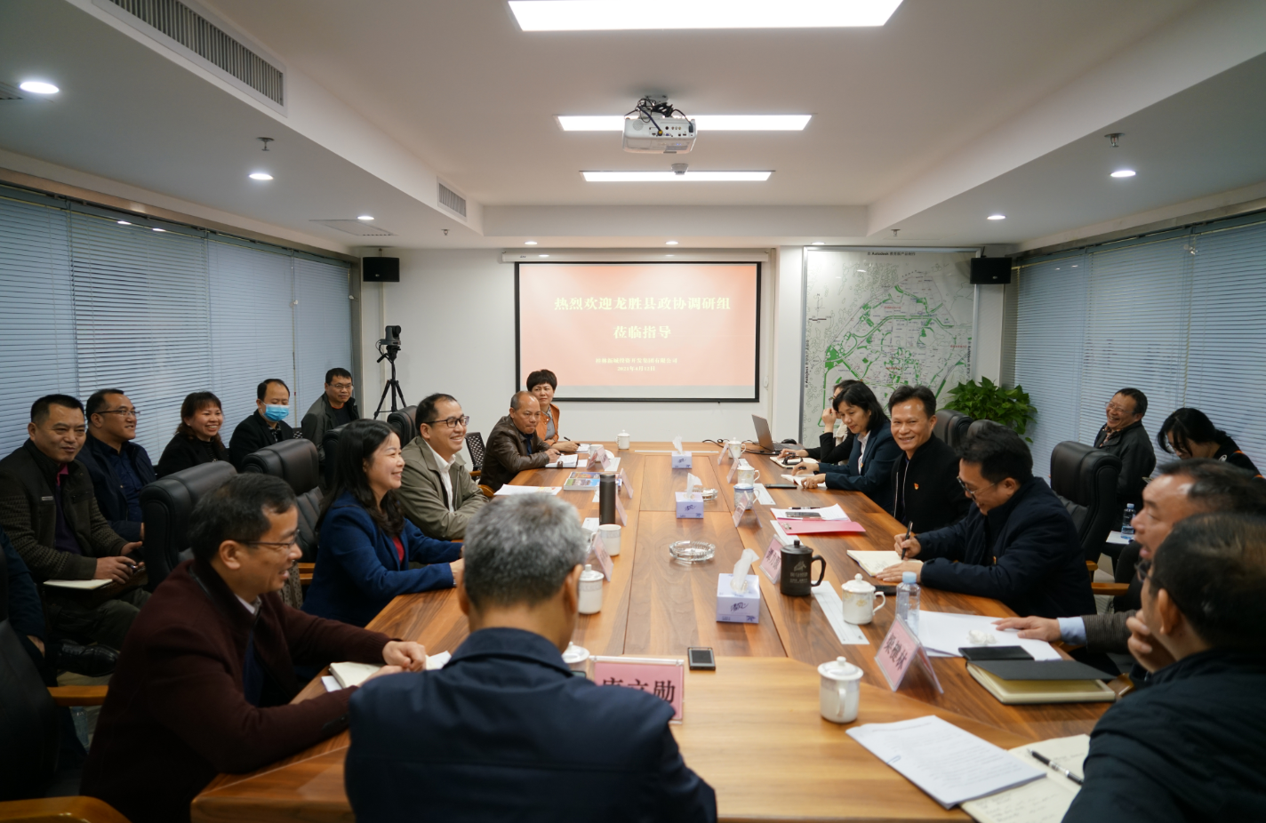4月12日,龍勝縣政協(xié)主席楊桂姬帶領(lǐng)調(diào)研組在臨桂區(qū)政協(xié)主席李先贈,臨桂新區(qū)工委委員、管委會常務(wù)副主任李星明的陪同下蒞臨桂林新城投資集團開展國有平臺公司市場化轉(zhuǎn)型工作學(xué)習(xí)調(diào)研。