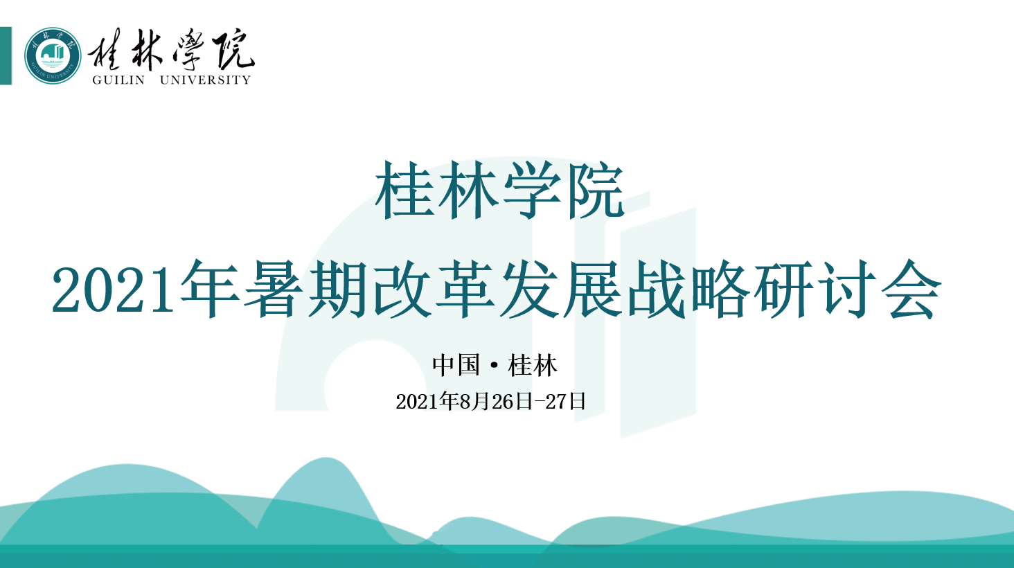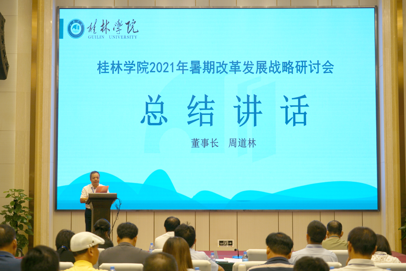 2021年8月26日至27日,桂林學院2021年暑期改革發(fā)展戰(zhàn)略研討會在宏謀大酒店召開。新城投資集團黨總支書記、董事長、總經(jīng)理、桂林學院董事長周道林攜舉辦方領(lǐng)導班子成員參加研討會。