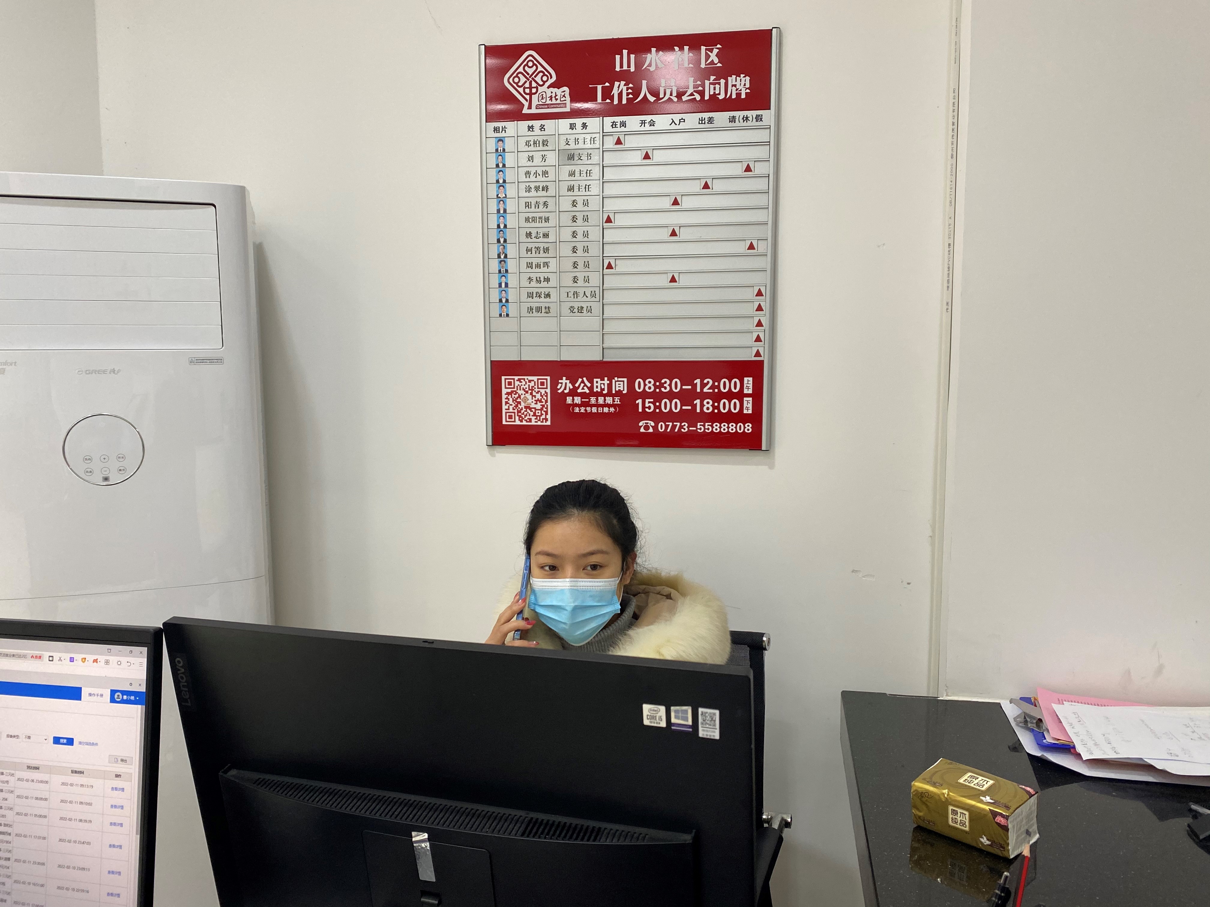 在山水社區(qū)黨群服務(wù)中心,志愿者們迅速投入到工作狀態(tài)中,為全力打贏疫情防控這場硬仗,大家從線上行程報備信息復(fù)核,到咨詢統(tǒng)計入桂、返桂人員核酸證明持證情況,各項工作緊張有序推進,很好的緩解了社區(qū)防疫相關(guān)工作存在的人手少、居住人口多、范圍大的緊張局面。