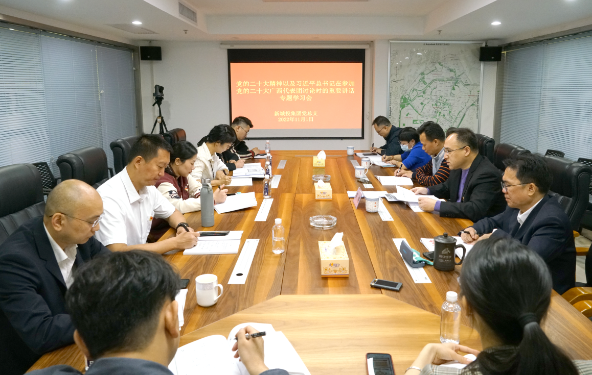 近日,新城投集團(tuán)采取靈活多樣的方式,在集團(tuán)公司全體黨員干部職工中迅速掀起宣傳貫徹黨的二十大精神和習(xí)近平總書(shū)記在參加黨的二十大廣西代表團(tuán)討論時(shí)的重要講話的學(xué)習(xí)熱潮。