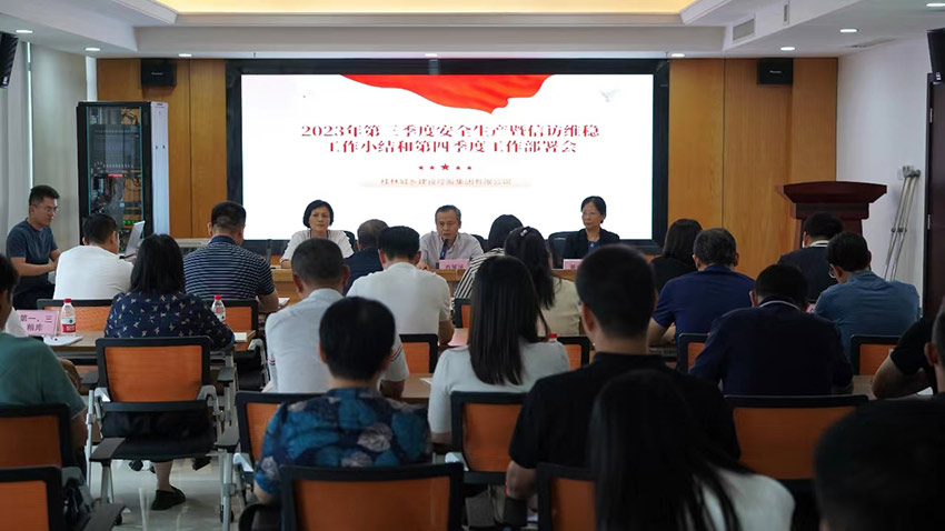 2023年10月26日,城建集團(tuán)黨委副書記、副董事長、總裁肖笛波主持召開2023年第三季度安全生產(chǎn)暨信訪維穩(wěn)工作小結(jié)和第四季度工作部署會,城建集團(tuán)各部室、下屬子公司主要負(fù)責(zé)人參加會議。新城投集團(tuán)黨委副書記、副董事長、總經(jīng)理朱毅對公司近期安全生產(chǎn)工作情況進(jìn)行匯報(bào)。會上,肖笛波對新城投集團(tuán)將黨建嵌入到安全生產(chǎn)管理工作的創(chuàng)新做法,以及對桂林新國際會展中心順利舉辦一系列大型活動(dòng)的安全保障工作予以充分肯定,要求新城投集團(tuán)進(jìn)一步落實(shí)檢查和考核職責(zé),及時(shí)發(fā)現(xiàn)并解決各類安全隱患。