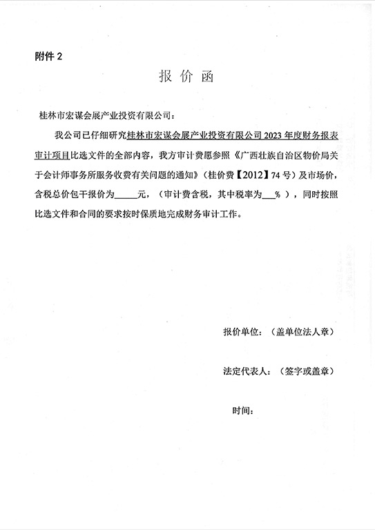 桂林市宏謀會展產(chǎn)業(yè)投資有限公司?2023年度財務(wù)報表審計項目采購文件