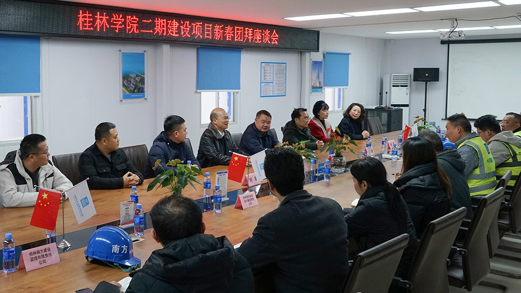 走訪結(jié)束后,在新城投集團領(lǐng)導(dǎo)班子的陪同下,陶毅一行來到桂林學(xué)院二期建設(shè)項目,向全體參建人員致以新春的誠摯祝福,并與各方參建單位開展新春團拜座談會。