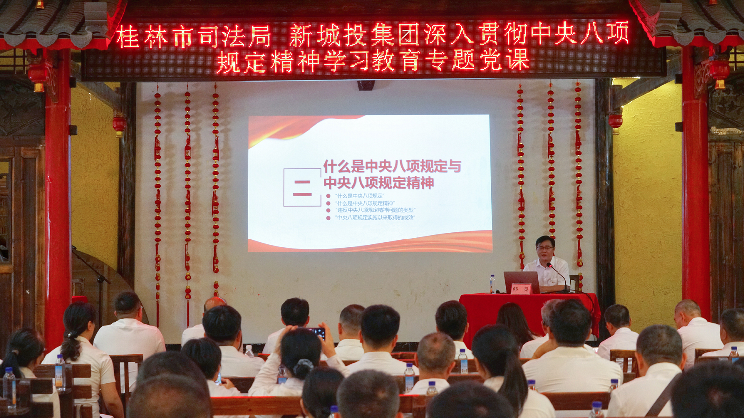 隨后,韓覓同志為全體人員講授了一堂專題黨課。以“深學(xué)篤行習(xí)近平總書記關(guān)于加強黨的作風(fēng)建設(shè)的重要論述 持續(xù)擦亮中央八項規(guī)定‘金色名片’以作風(fēng)建設(shè)新成效推動司法行政工作和國有企業(yè)內(nèi)控高質(zhì)量發(fā)展”為題,圍繞“為什么要強調(diào)作風(fēng)建設(shè),什么是中央八項規(guī)定與中央八項規(guī)定精神,如何開展好深入貫徹中央八項規(guī)定精神學(xué)習(xí)教育”三個方面,重點闡述了“為什么、是什么、怎么做”,進一步增強了黨員干部紀律意識和規(guī)矩意識,對切實改進工作作風(fēng)具有很強的指導(dǎo)意義。